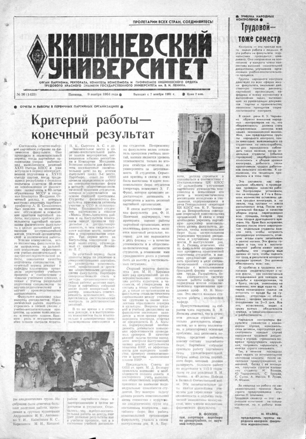 Ziarul USM – Nr. 36 (1423) 9 noiembrie 1984