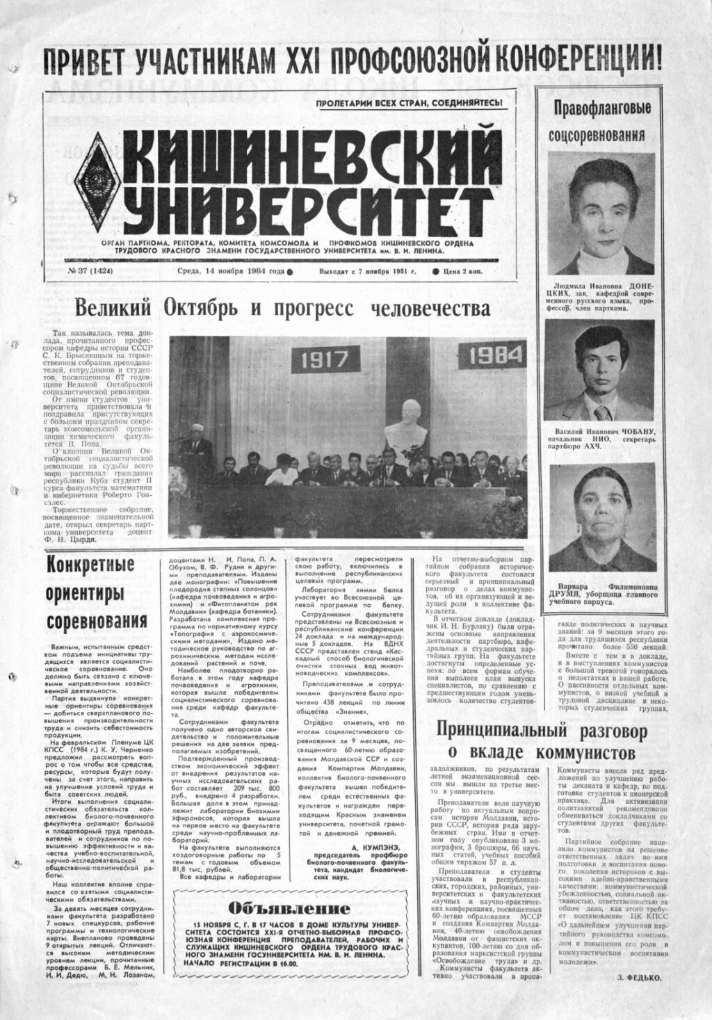 Ziarul USM – Nr. 37 (1424) 14 noiembrie 1984