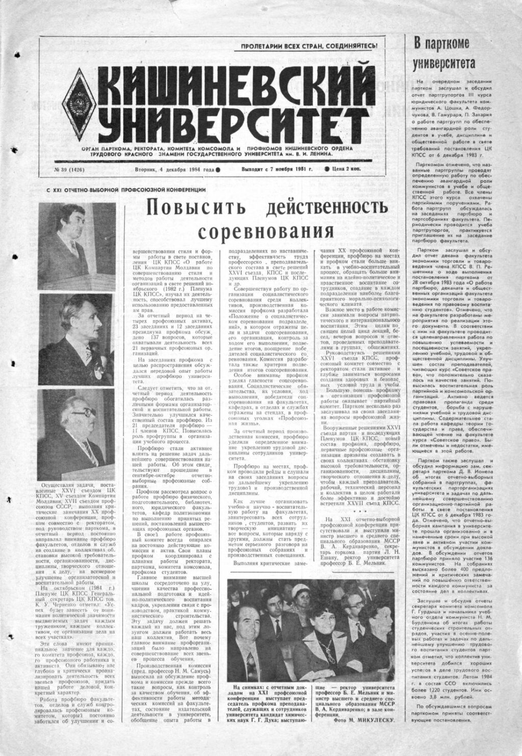 Ziarul USM – Nr. 39 (1426) 4 decembrie 1984