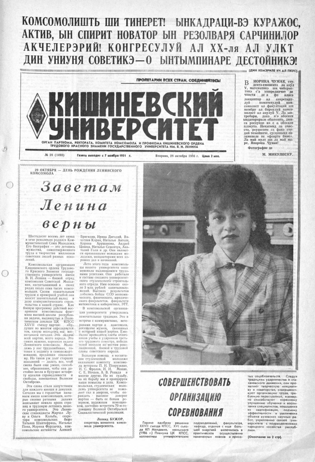 Ziarul USM – Nr. 28 (1493) 28 octombrie 1986