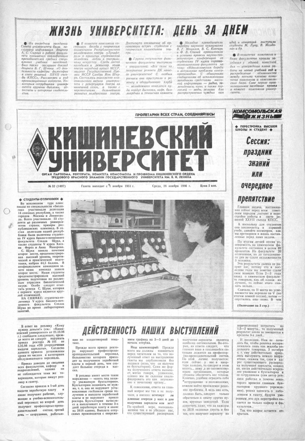 Ziarul USM – Nr. 32 (1497) 26 noiembrie 1986