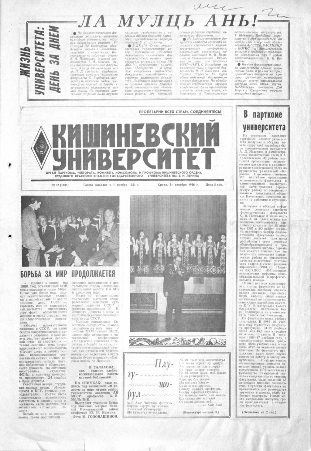 Ziarul USM – Nr. 37 (1501) 31 decembrie 1986