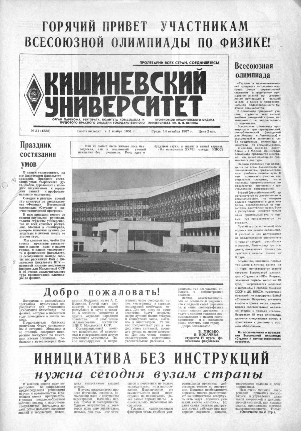 Ziarul USM – Nr. 31 (1532) 14 octombrie 1987