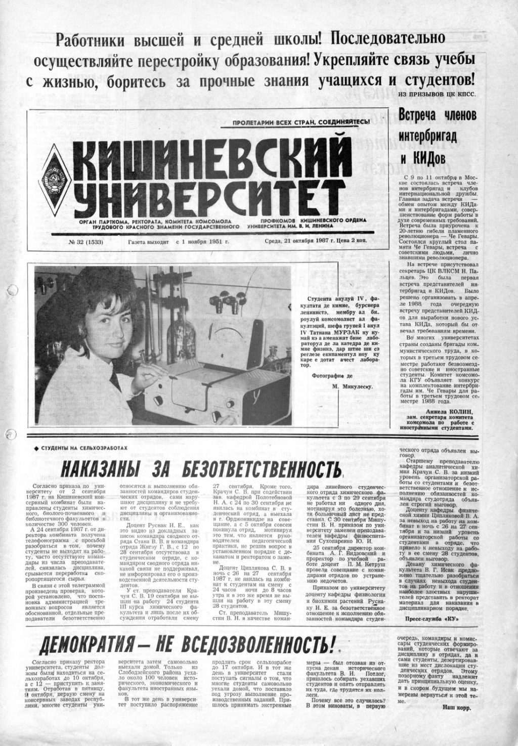 Ziarul USM – Nr. 32 (1533) 21 octombrie 1987
