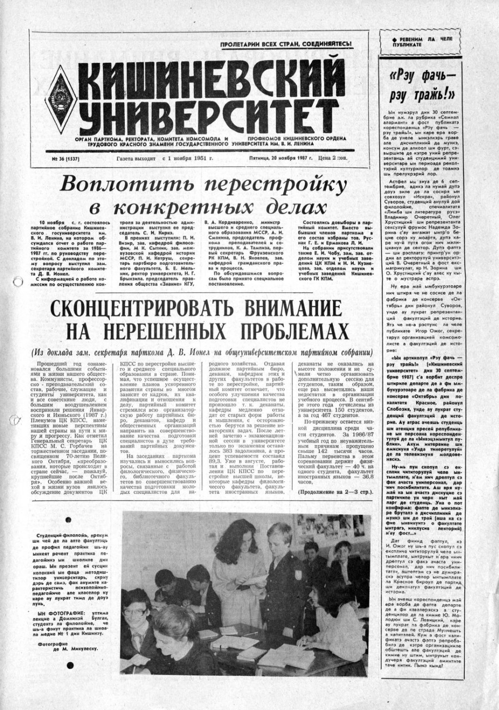 Ziarul USM – Nr. 36 (1537) 20 noiembrie 1987