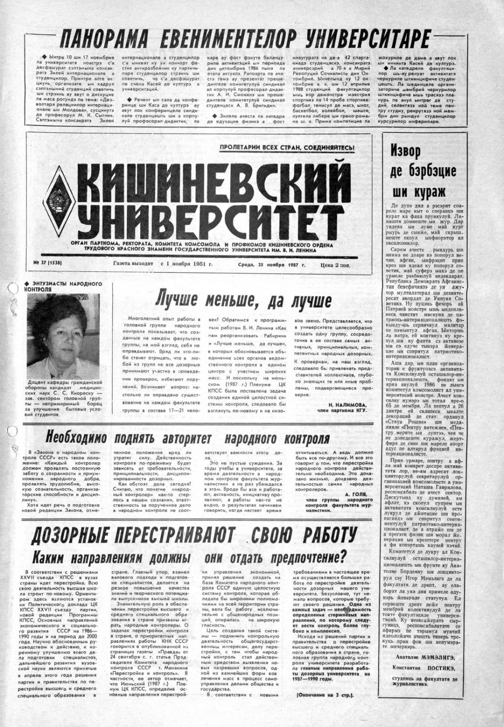 Ziarul USM – Nr. 37 (1538) 25 noiembrie 1987