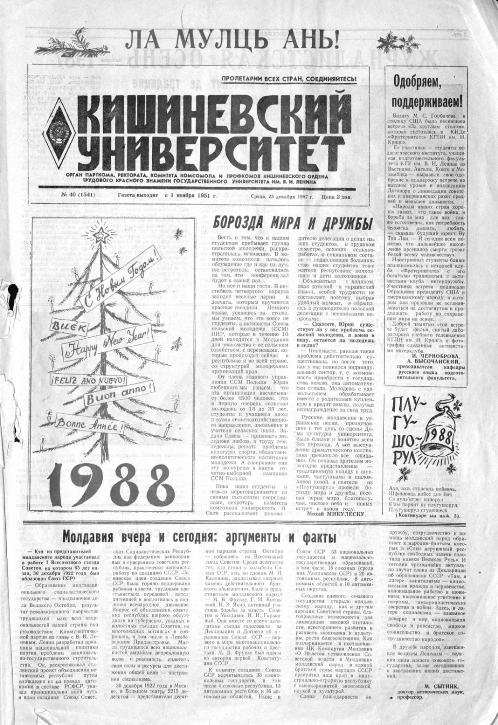 Ziarul USM – Nr. 40 (1541) 23 decembrie 1987