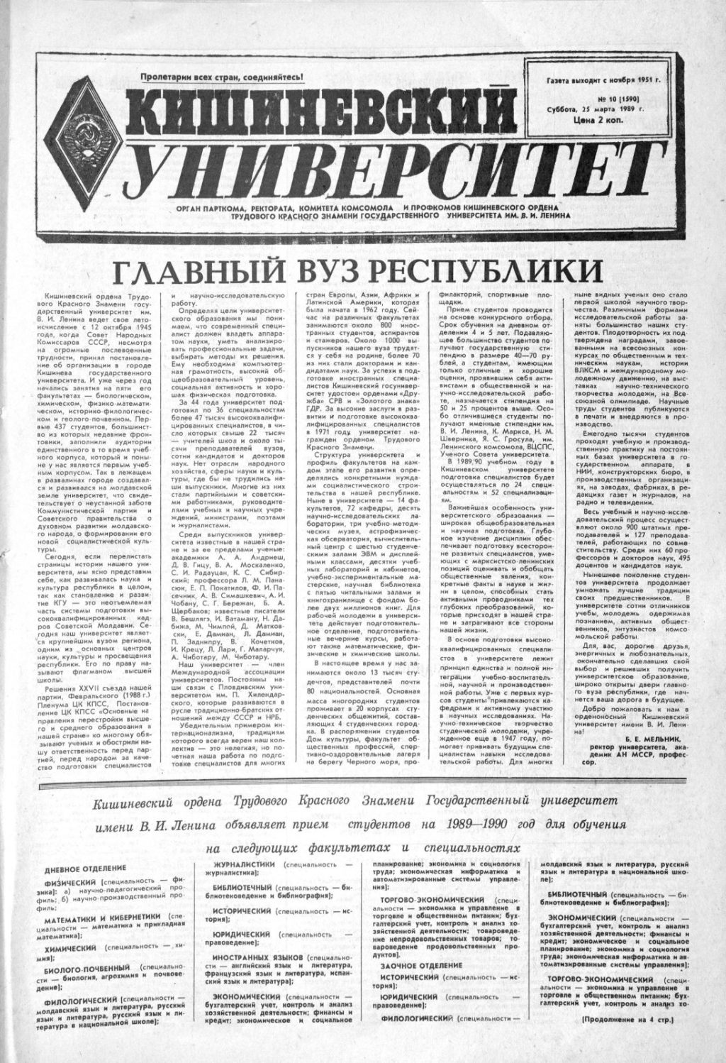 Ziarul USM – Nr. 10 (1590) 25 martie 1989