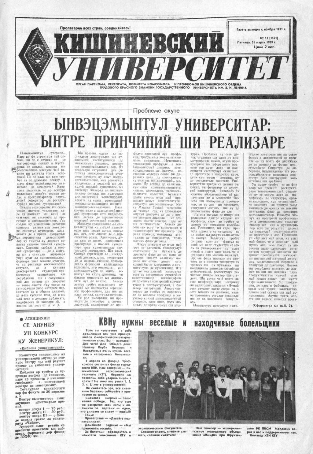 Ziarul USM – Nr. 11 (1591) 31 martie 1989