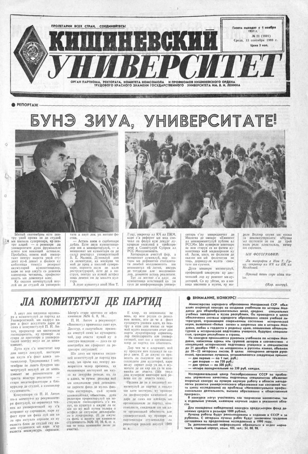 Ziarul USM – Nr. 21 (1601) 13 septembrie 1989