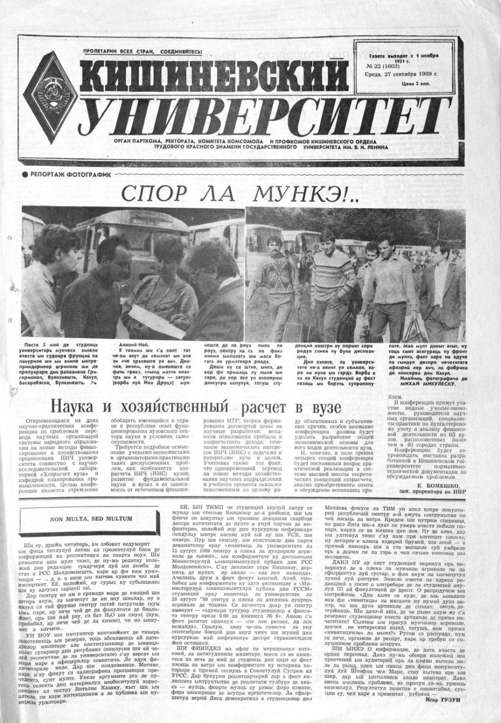Ziarul USM – Nr. 22 (1602) 27 septembrie 1989