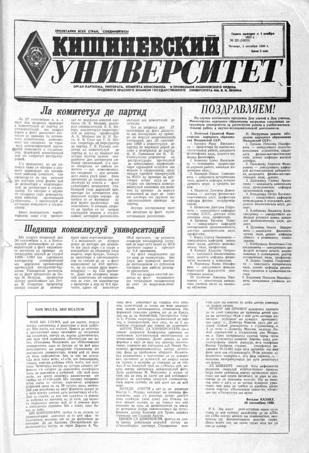 Ziarul USM – Nr. 23 (1603) 5 octombrie 1989