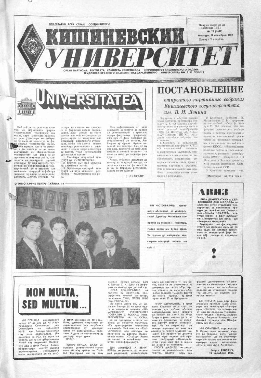 Ziarul USM – Nr. 27 (1607) 29 noiembrie 1989