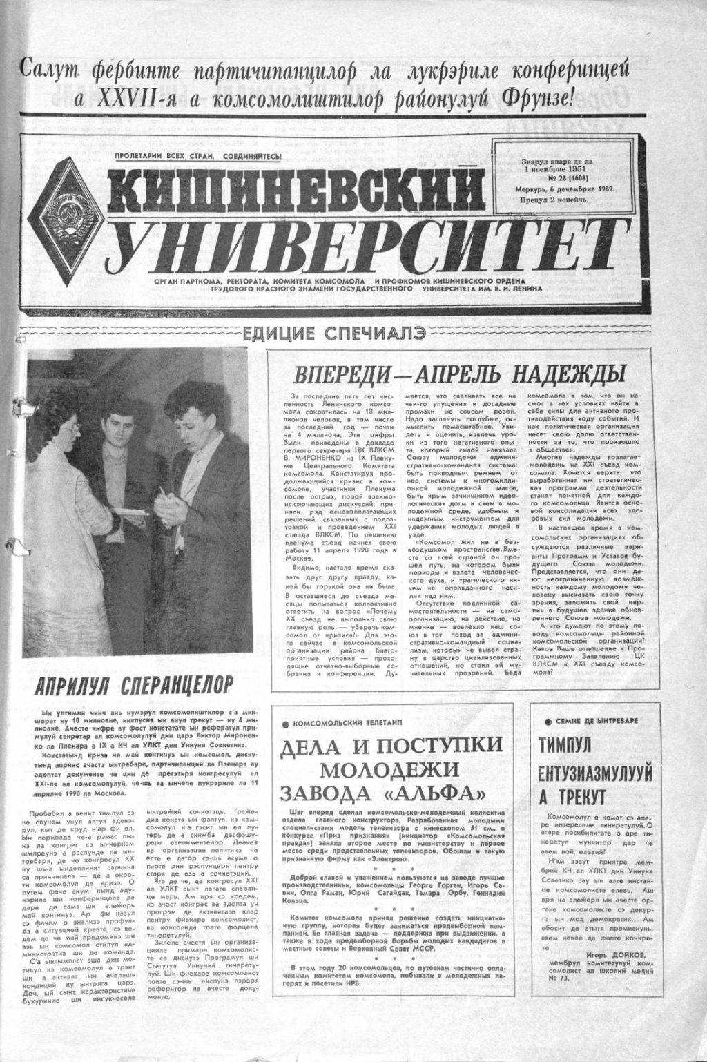 Ziarul USM – Nr. 28 (1608) 6 decembrie 1989