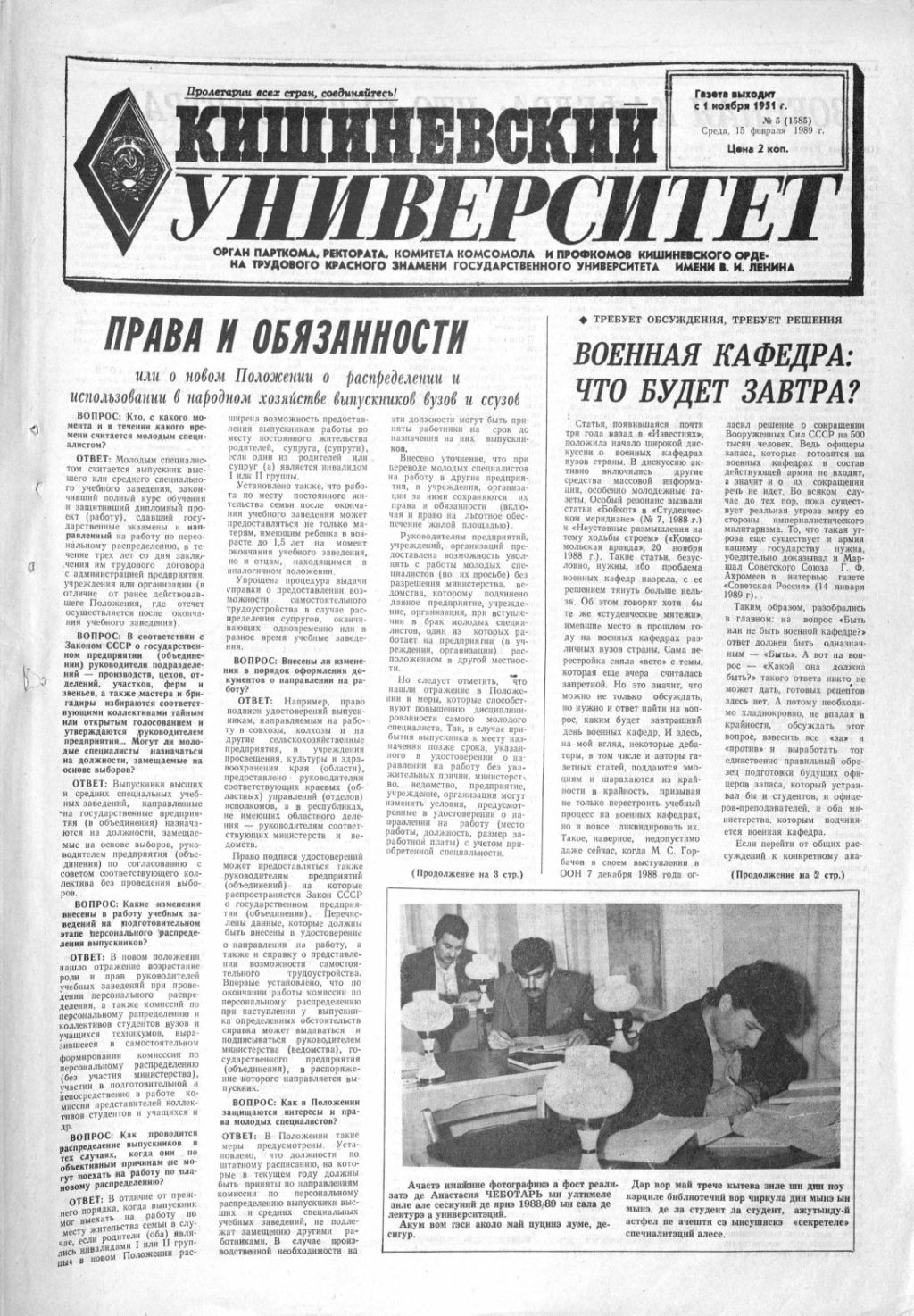 Ziarul USM – Nr. 5 (1585) 15 februarie 1989