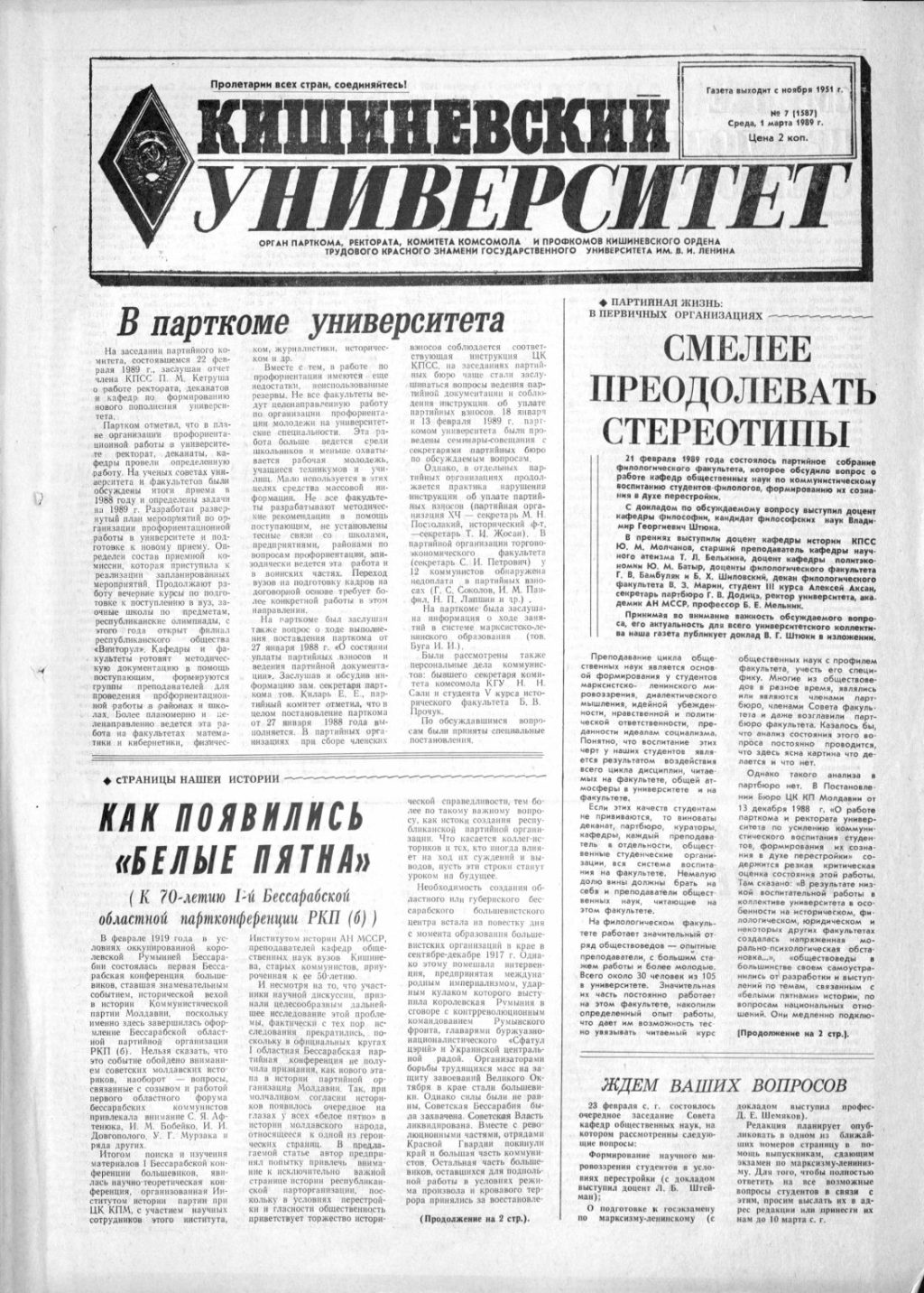 Ziarul USM – Nr. 7 (1587) 1 martie 1989