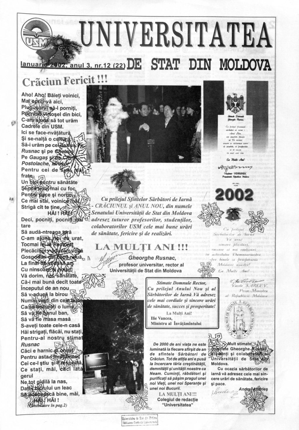 Ziarul USM – Nr. 12 (22) ianuarie 2002
