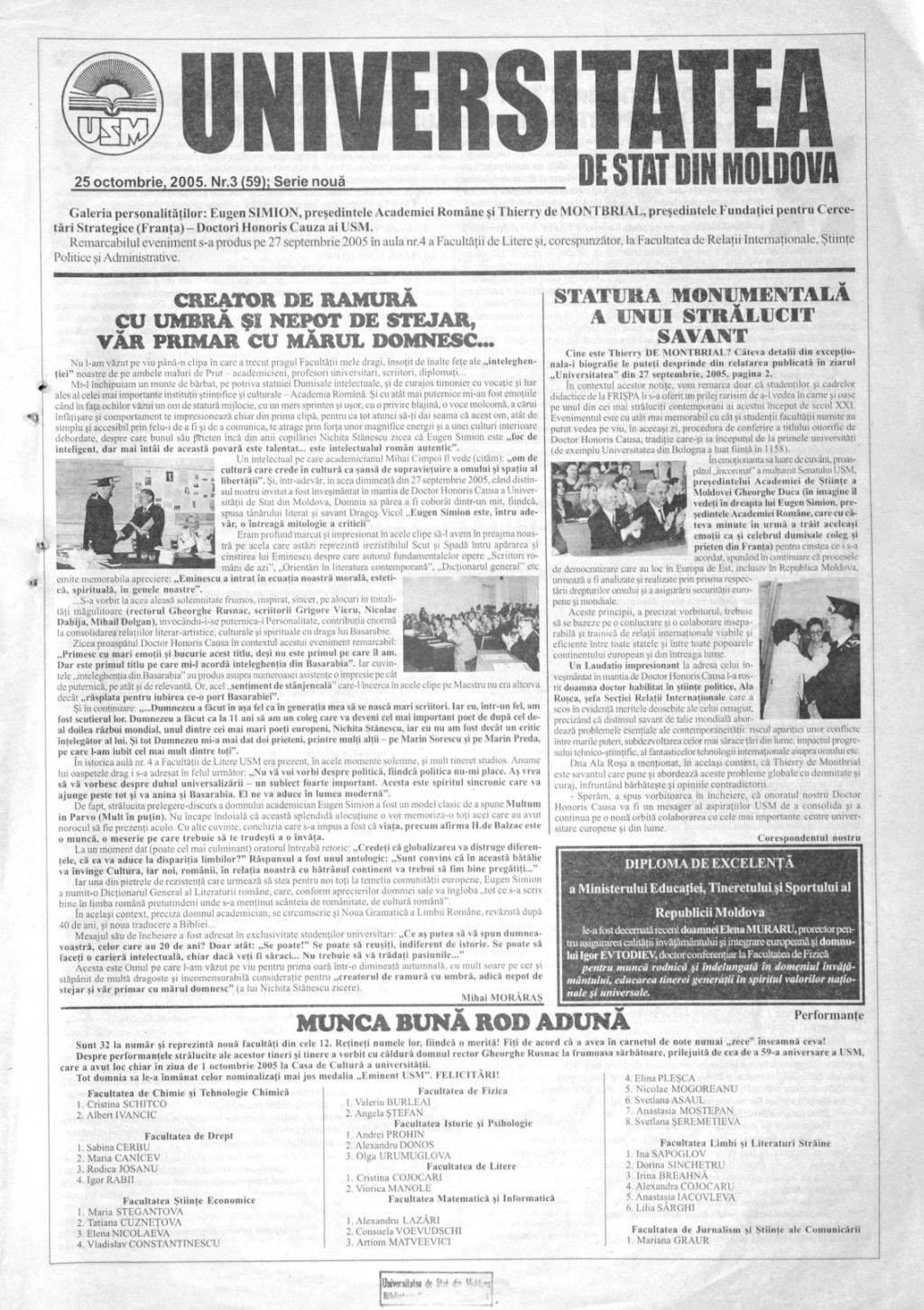 Ziarul USM – Nr. 3 (59) 25 octombrie 2005