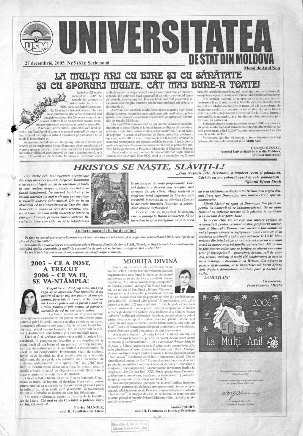 Ziarul USM – Nr. 5 (61) 27 decembrie 2005