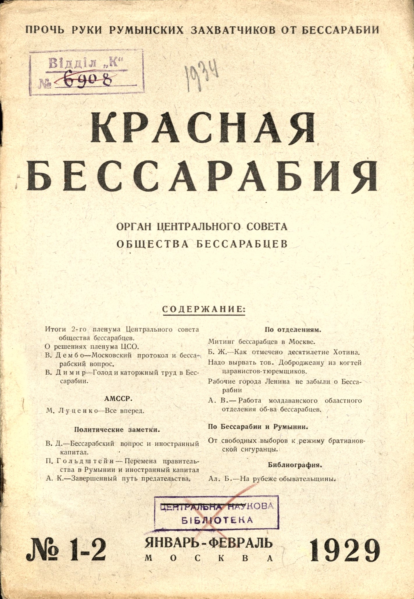 Красная Бессарабия – 1929, № 1/2 (19/20) (январь/февраль). – 32 с.