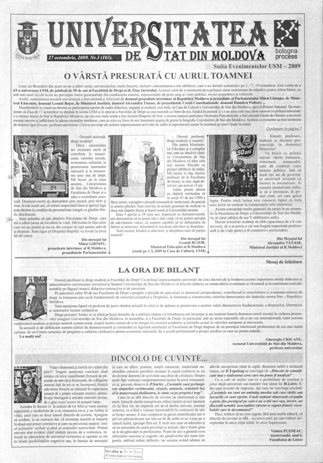 Ziarul USM – Nr. 3 (103) 27 octombrie 2009