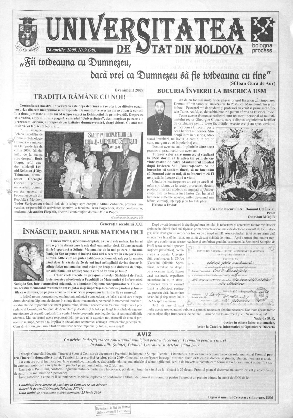 Ziarul USM – Nr. 9 (98) 28 aprilie 2009