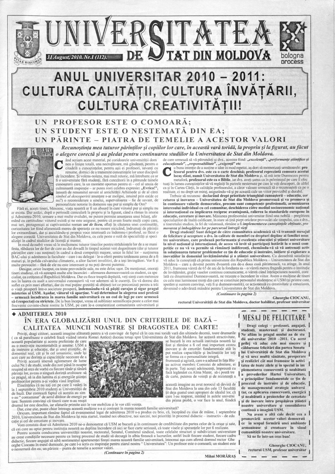 Ziarul USM – Nr. 1 (112) 31 august 2010