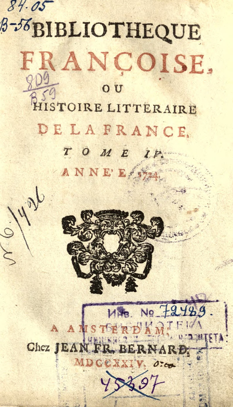 Bibliothèque françoise, ou Histoire littéraire de la France. Томe 4 / Directeurs de publication: Jean-Frédéric...