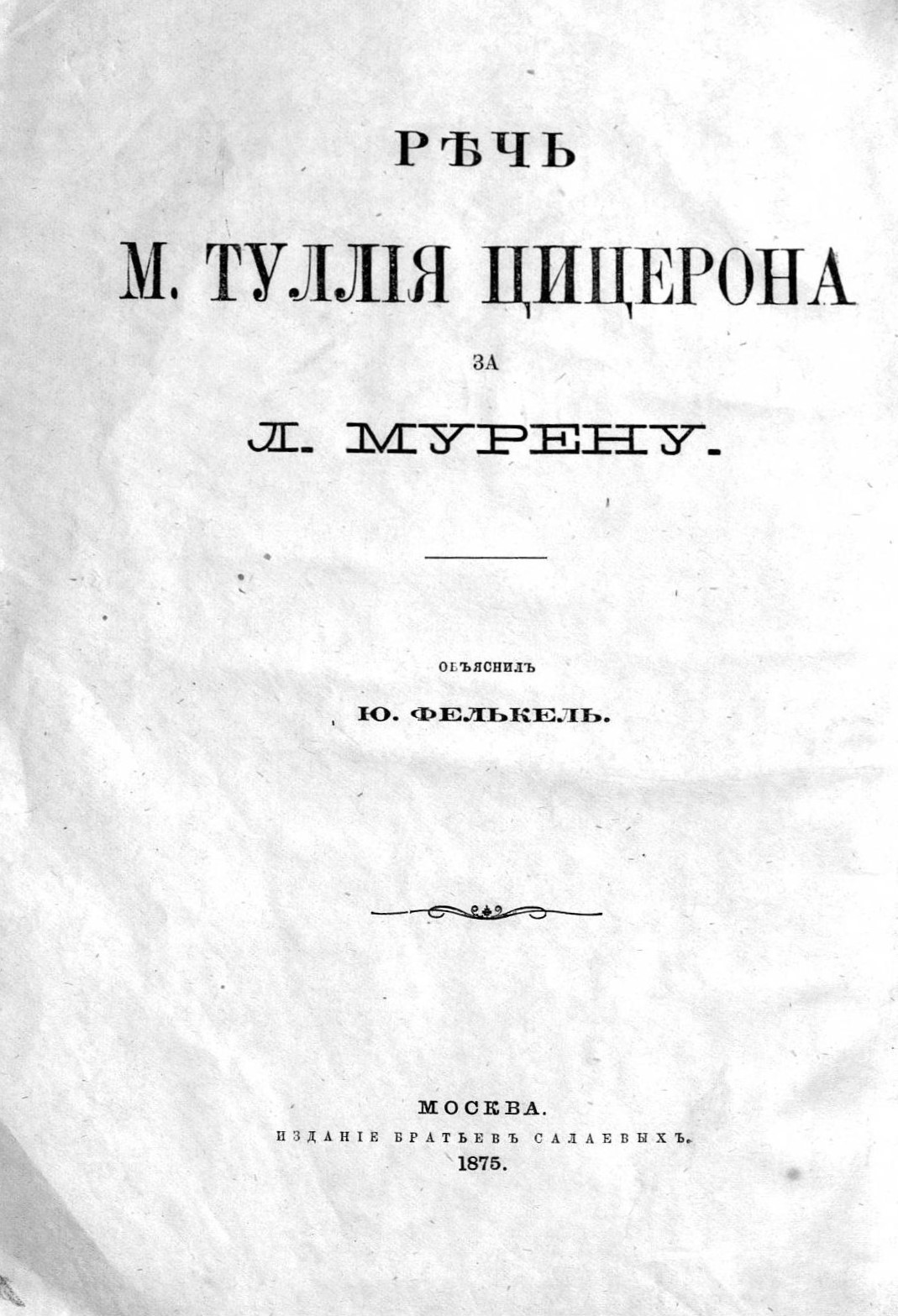 Ciceronis, Marcus Tullius. Pro L. Murena oratio = Речь М. Туллия Цицерона за Л. Мурену / curavit...