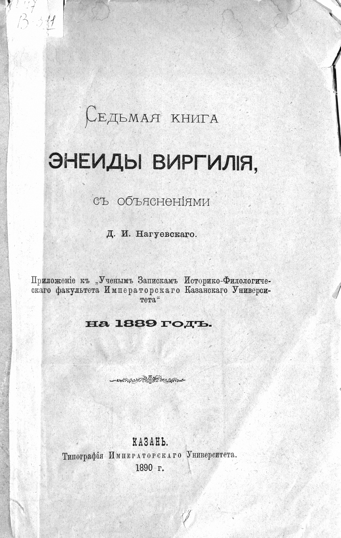 Вергилий, Публий Марон. Седьмая книга Энеиды Виргилия / с объяснениями Д. И. Нагуевского. – Казань : Типография Императорского Университета...