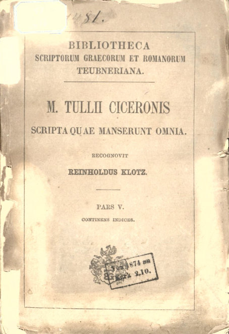 Cicero, Marcus Tullius. M. Tullii Ciceronis scripta quae manserunt omnia. Pars 5 : Continens. Indices (1872)