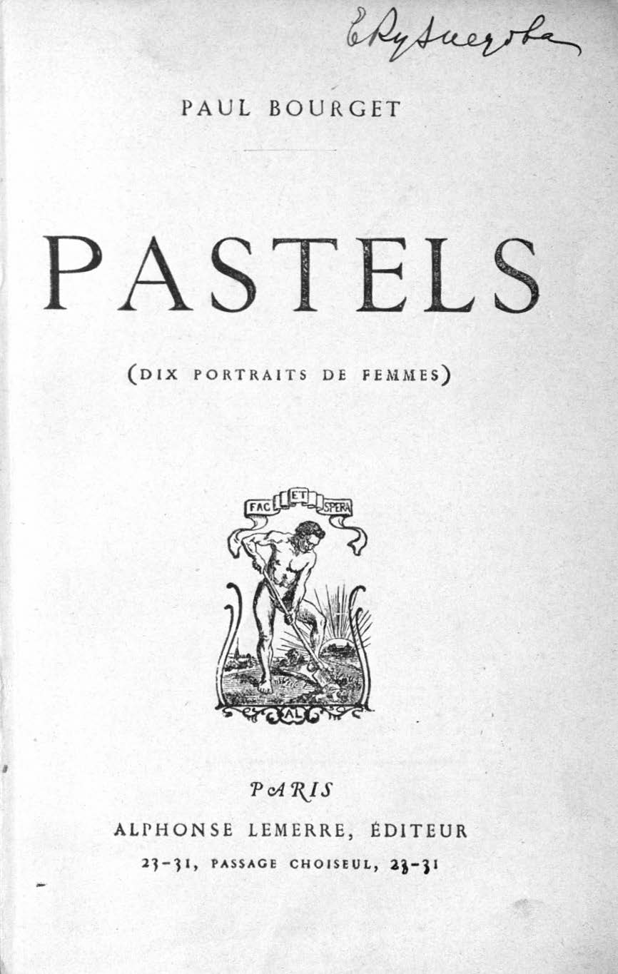 Bourget, Paul. Pastels : (dix portraits de femmes) / Paul Bourget. – Paris : Éditeur...