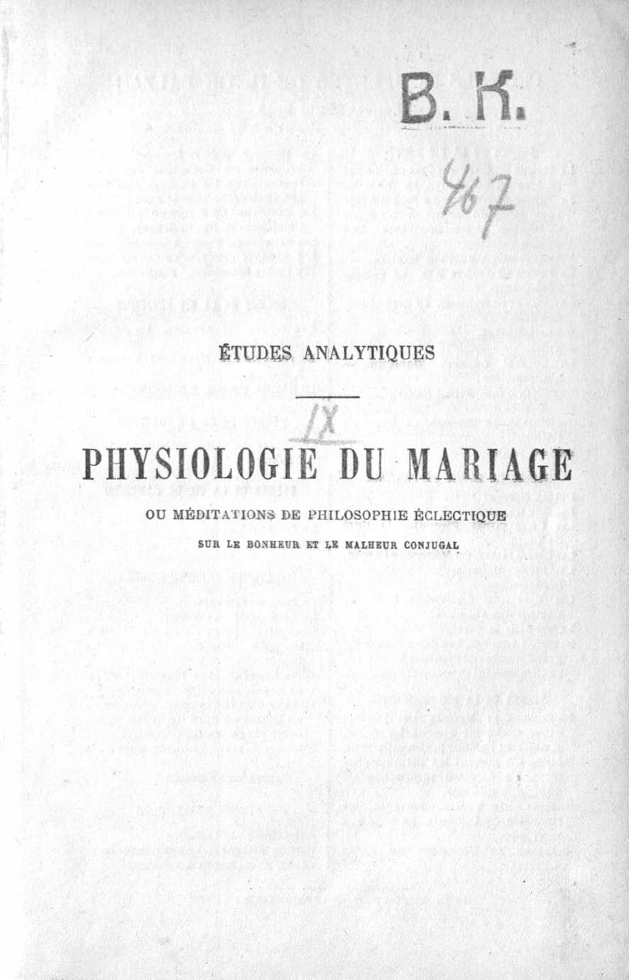 Balzac, Honoré de. Physiologie du marriage (1903)