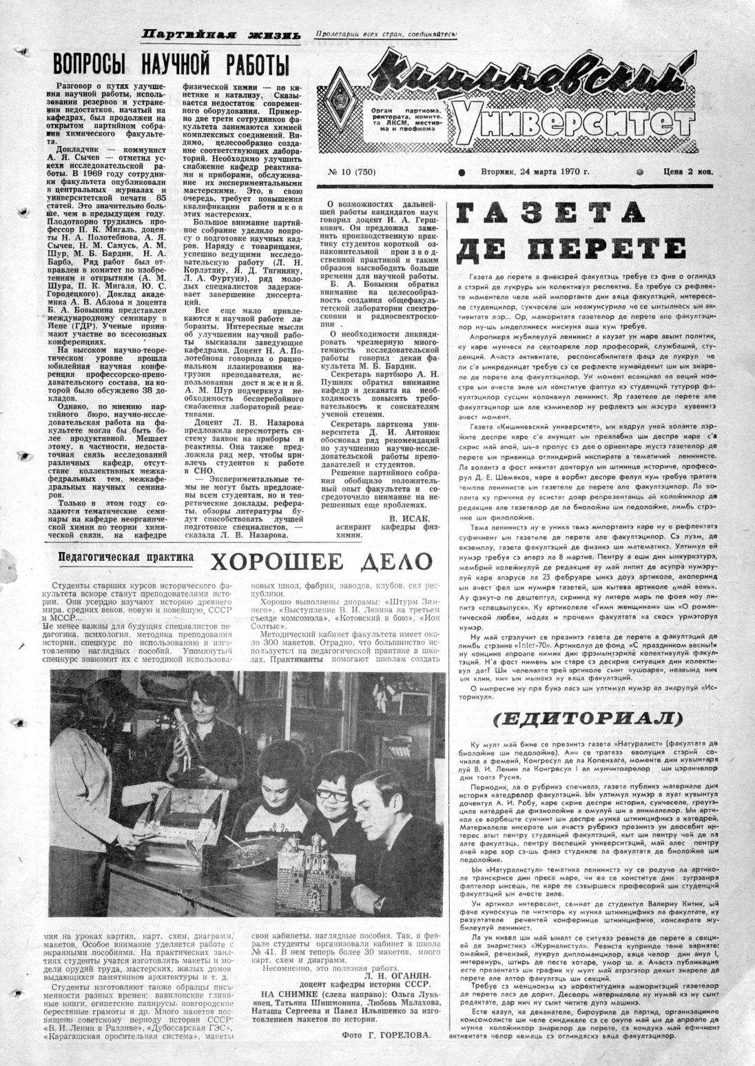 Ziarul USM – Nr. 10 (750) 24 martie 1970