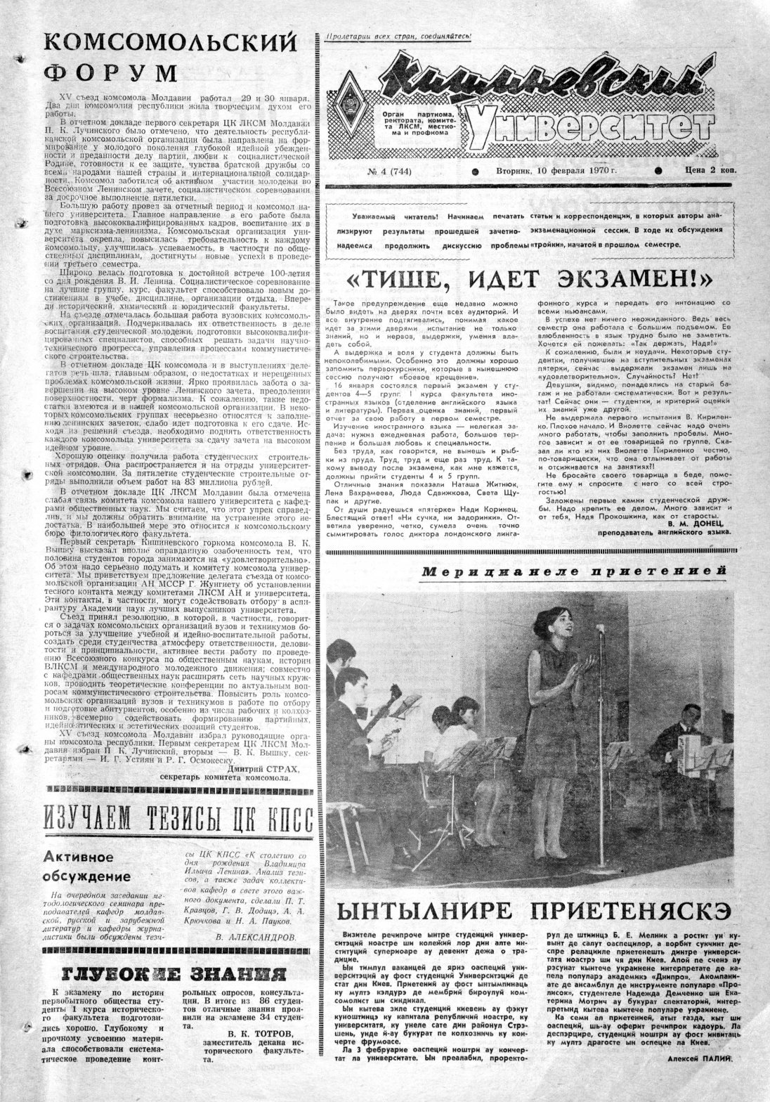 Ziarul USM – Nr. 4 (744) 10 februarie 1970