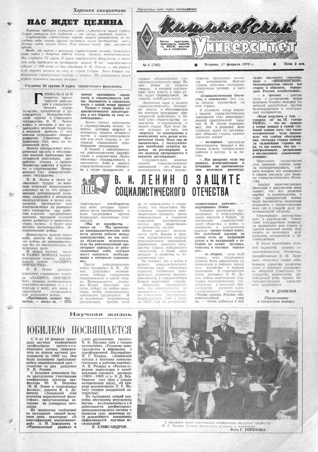 Ziarul USM – Nr. 5 (745) 17 februarie 1970