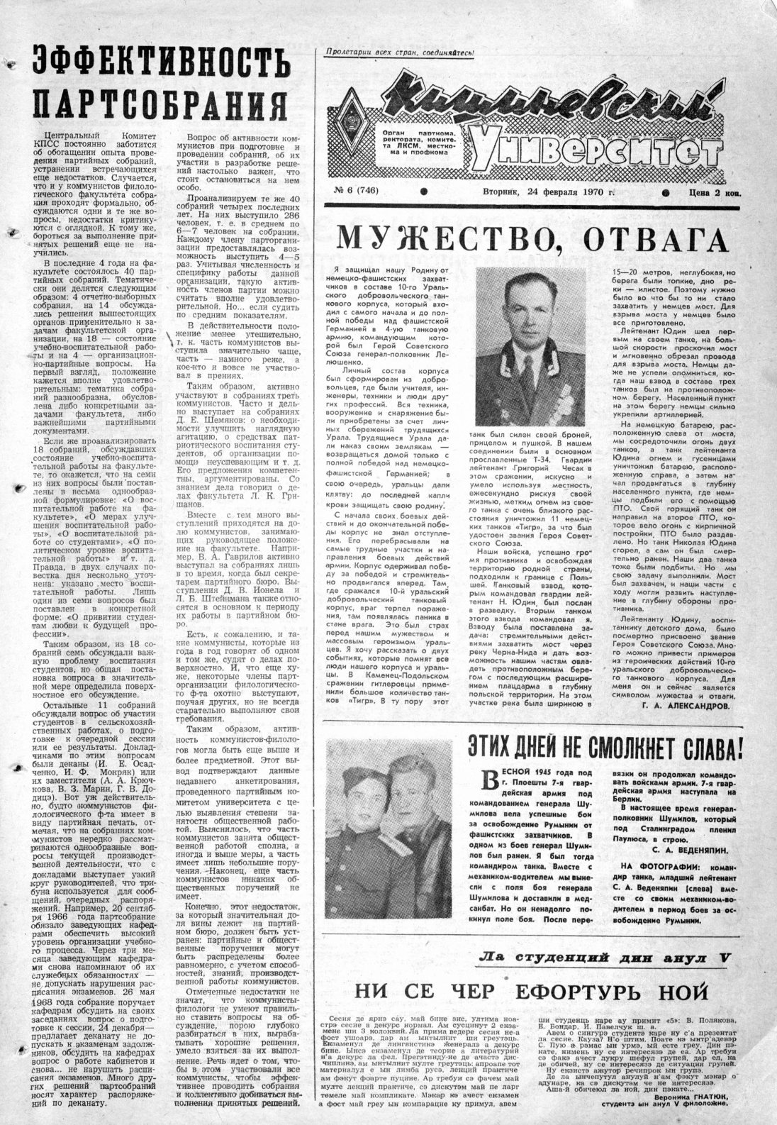 Ziarul USM – Nr. 6 (746) 24 februarie 1970
