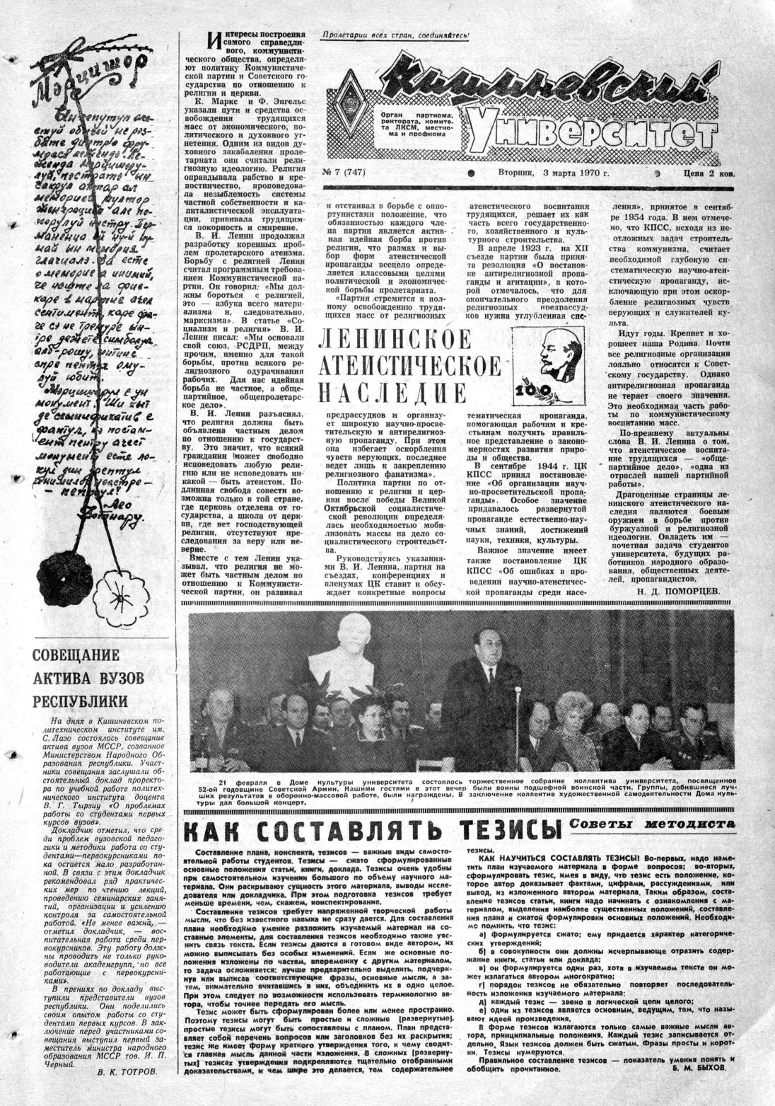 Ziarul USM – Nr. 7 (747) 3 martie 1970