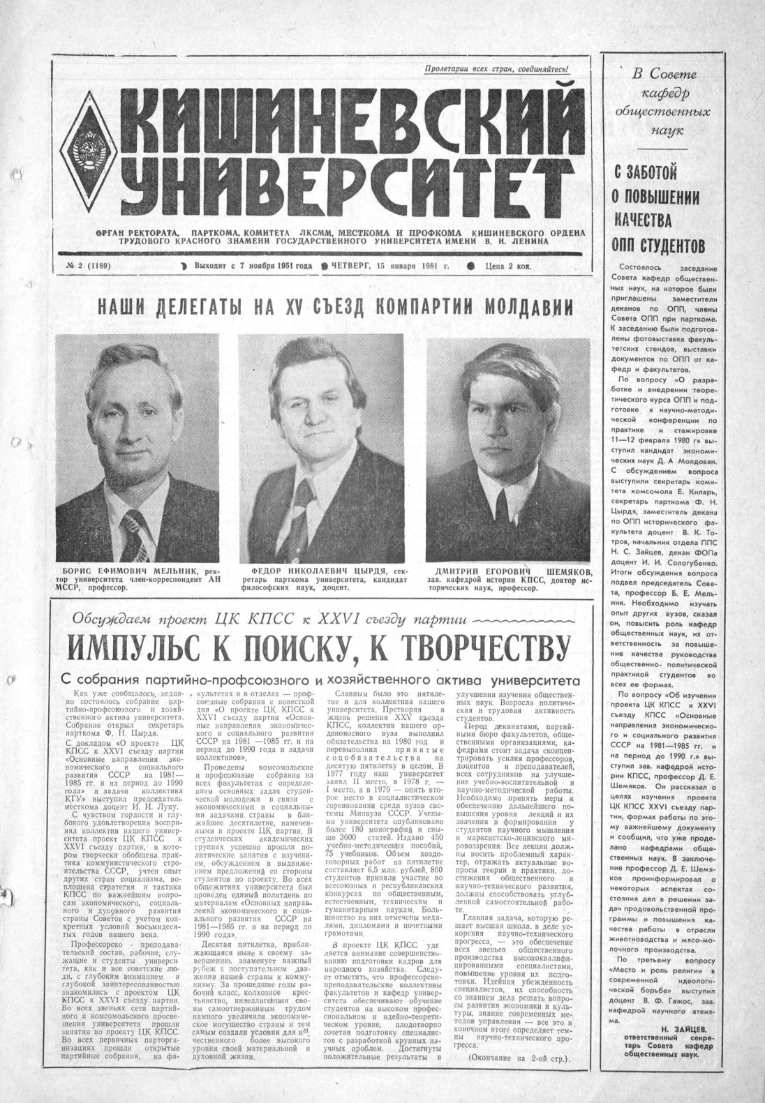 Ziarul USM – Nr. 2 (1189) 15 ianuarie 1981