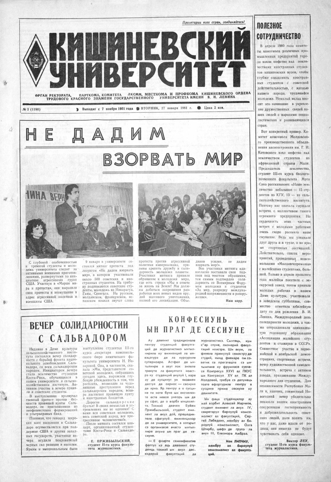 Ziarul USM – Nr. 3 (1190) 27 ianuarie 1981