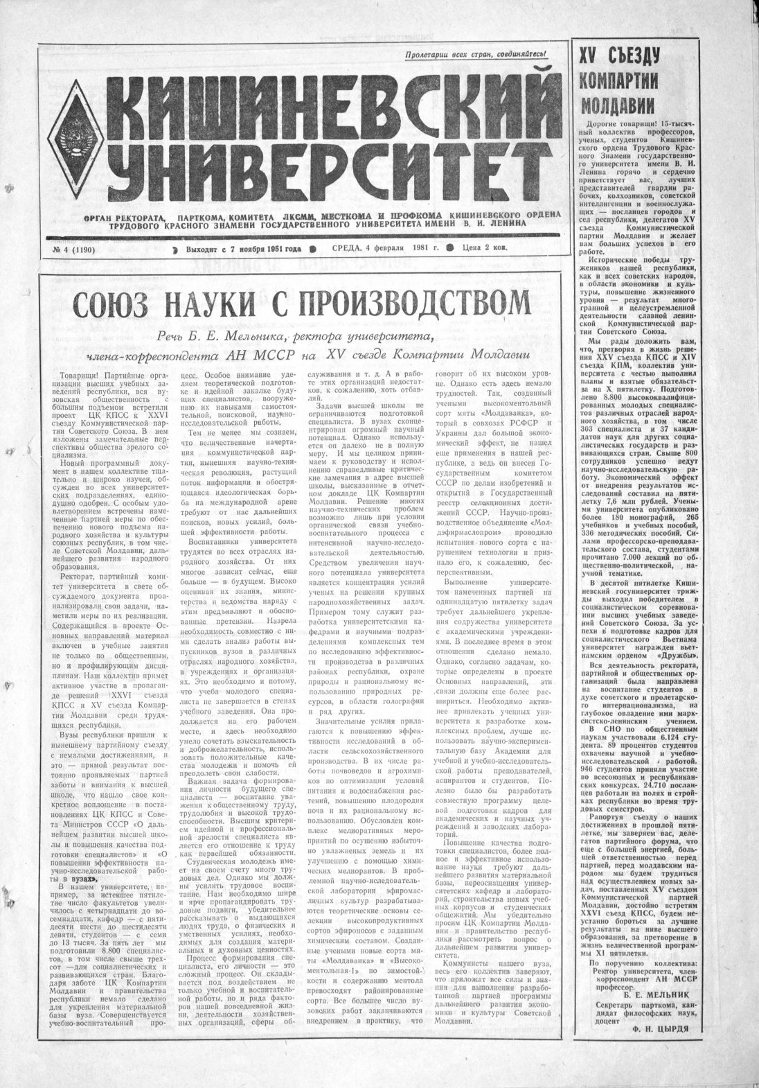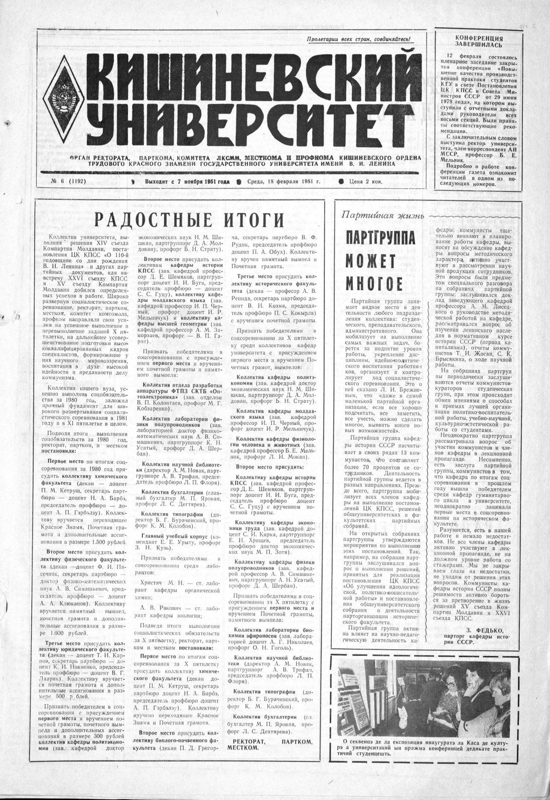 Ziarul USM – Nr. 6 (1192) 18 februarie 1981