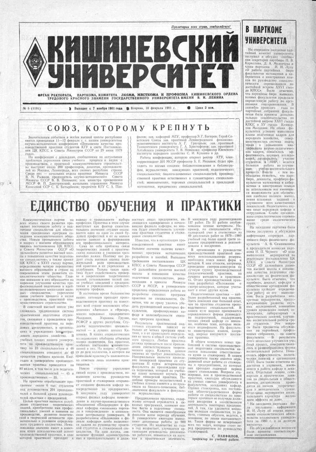 Ziarul USM – Nr. 5 (1191) 10 februarie 1981