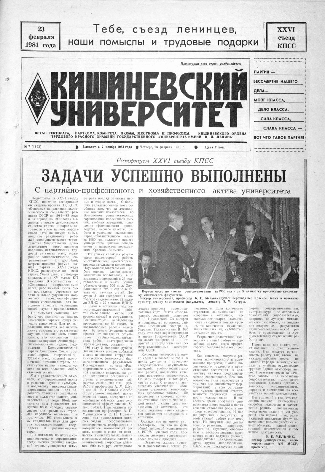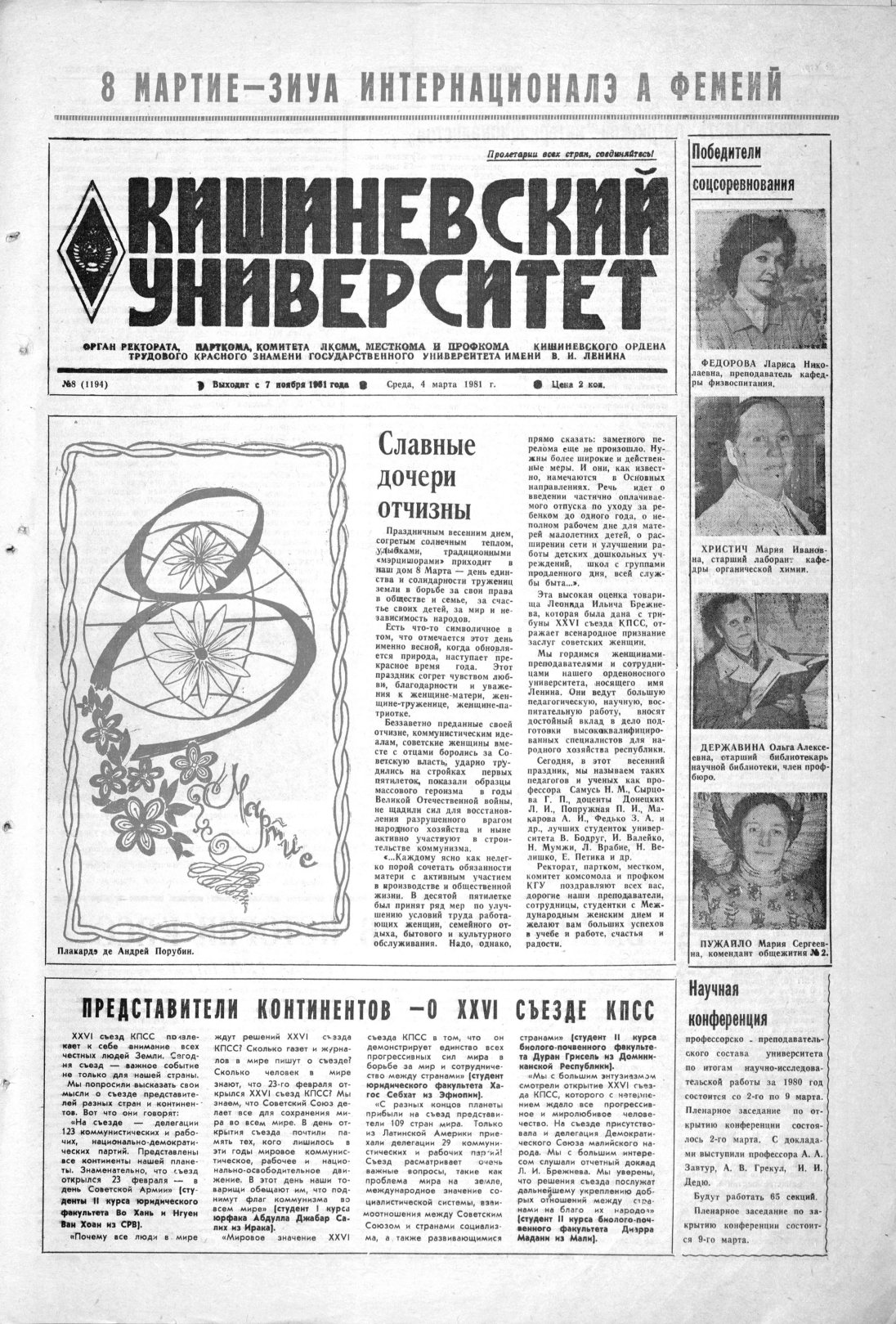 Ziarul USM – Nr. 7 (1193) 26 februarie 1981