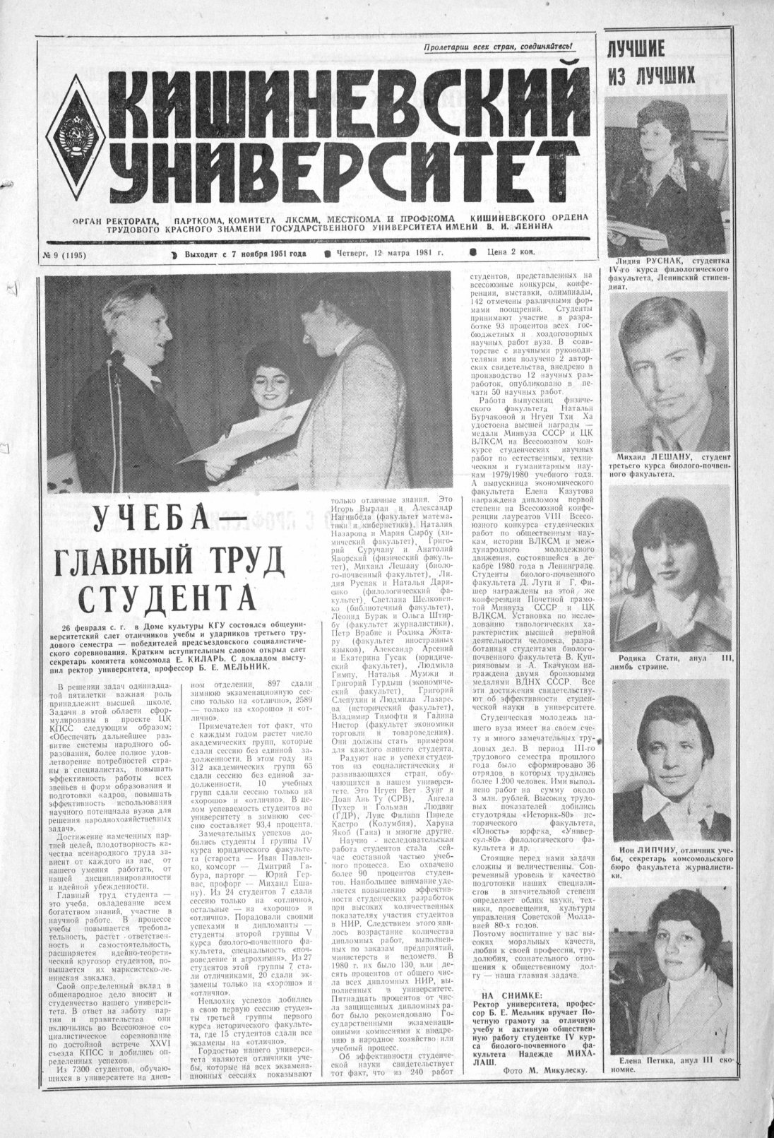 Ziarul USM – Nr. 9 (1195) 12 martie 1981